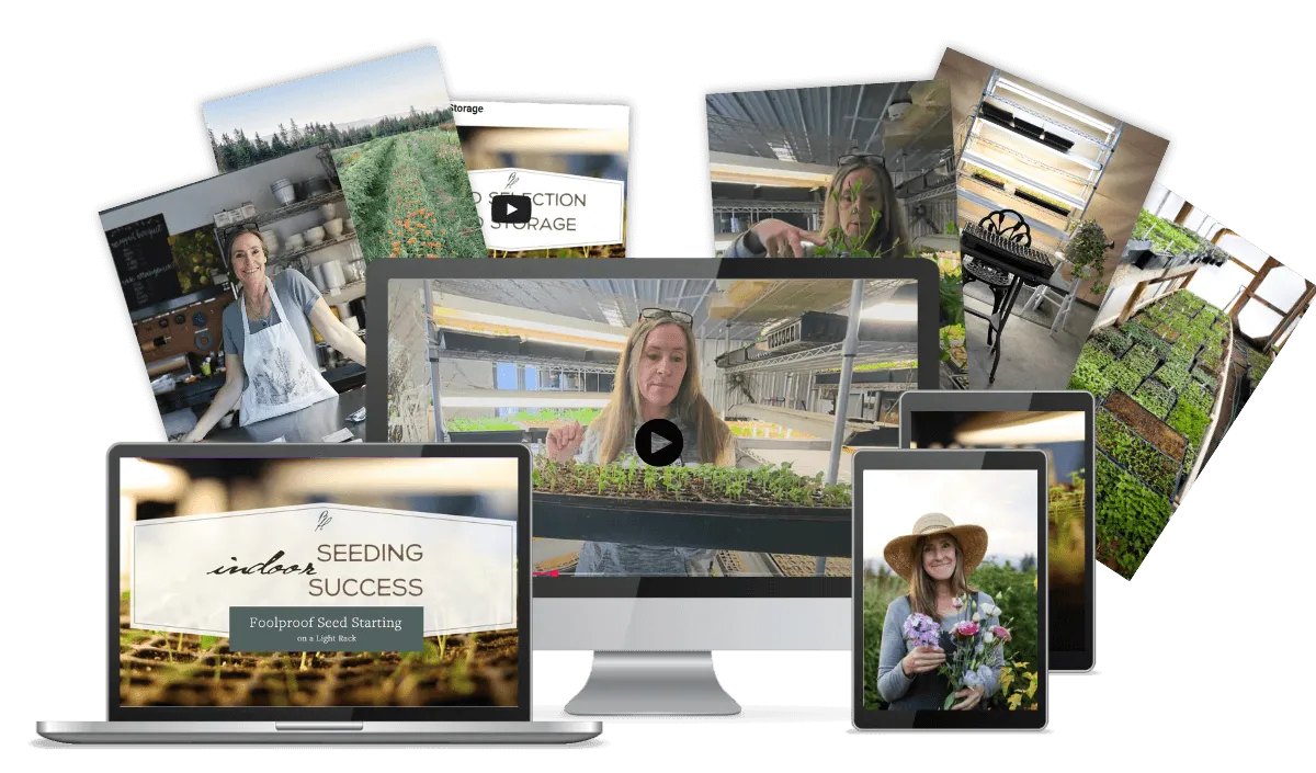 This complete mini course covers everything: selecting the best cut flower varieties, ordering from the right sources, choosing the perfect trays, mastering seeding techniques, and growing strong seedlings using a simple light rack system. I'm sharing my exact process and keeping it simple.